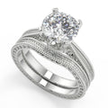 Karla Hand Engraved 4 Prong Milgrain Solitaire Round Cut Diamond Engagement Ring