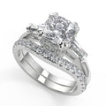 Jacey Baguette Accents 3 Stone Double Prong Cushion Cut Diamond Engagement Ring