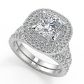 Miriam Double Halo Split Shank Pave Cushion Cut Diamond Ring